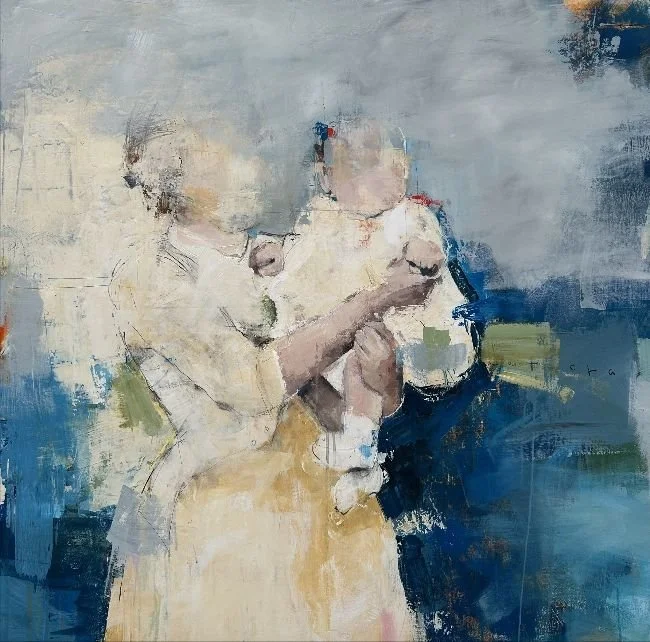 I'm working on a series based on old family photos. The initial works were a combination of paint, charcoal and soft pastels, but I decided to stretch myself into working mainly with paint. This was a stretch because the charcoal and pastels were allowing me to create a strong feeling of times gone by. Something about the limited colour as well as the textures gave a feeling of ghostly figures that were both there are not there.