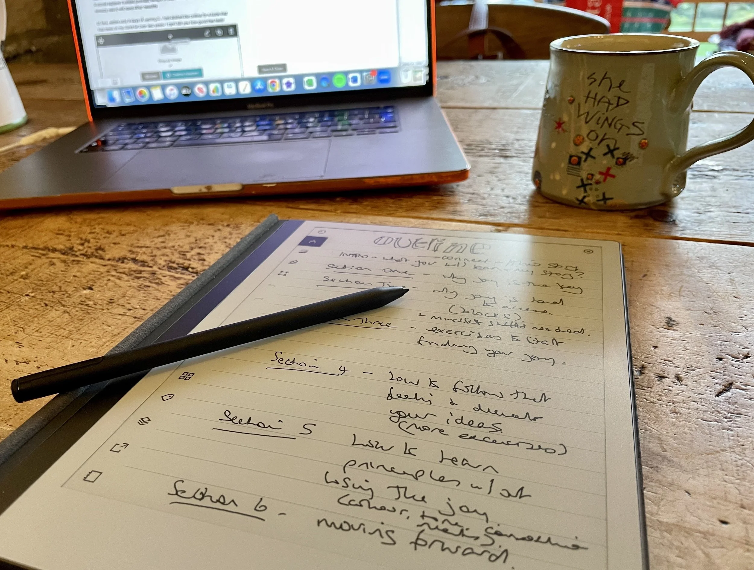 I bought a new gadget - a Remarkable - after hearing about it from Alice Sheridan on our podcast. It's basically a digital version of a paper notebook - or rather a digital version of an infinite pile of digital notebooks. I bought it, hoping it would replace multiple journals, scraps of paper and post-it notes, but I can already see it will have other benefits.