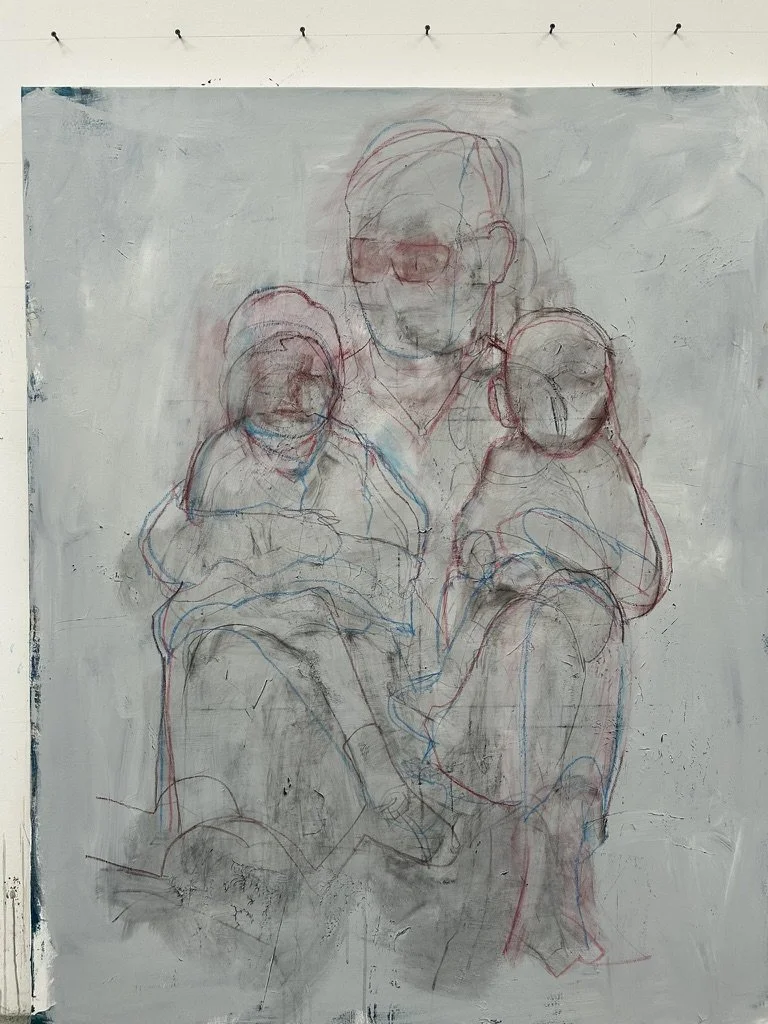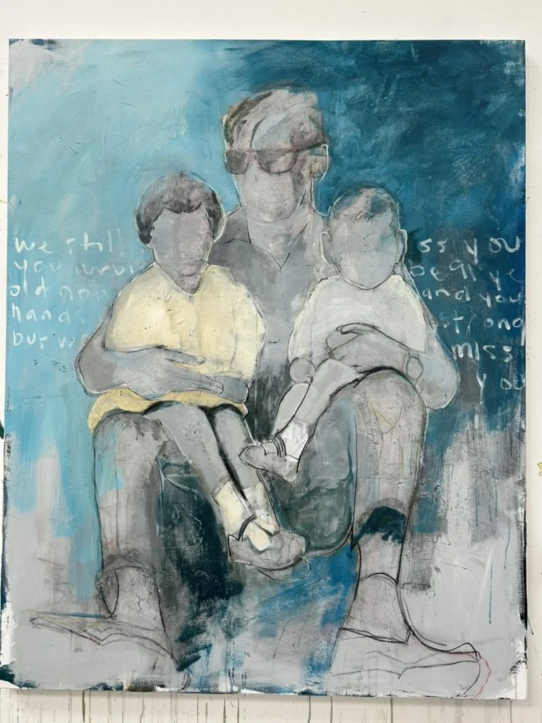 As I've developed these ideas about memory, family and connection, each painting has turned out to have its own unique message. I start each one in the same way - with a charcoal drawing on a painted canvas - but then they take on a life of their own. We start a dialogue. The painting asks questions and I answer.